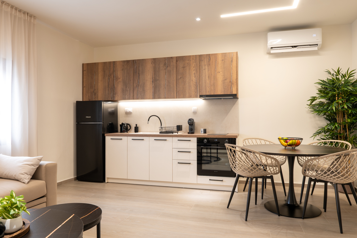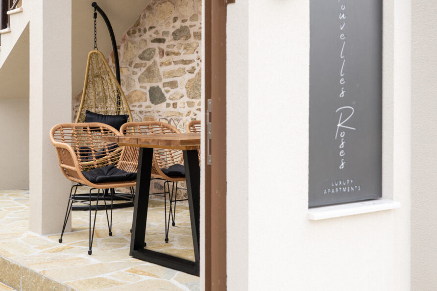 The apartment is located in beautiful Nea Roda, Halkidiki, just 200 meters from the sea, offering easy access to clean beaches and crystal-clear waters. It is a brand-new, tastefully designed 60 sq.m. space, created with comfort and functionality in mind, suitable for both families and groups of friends.