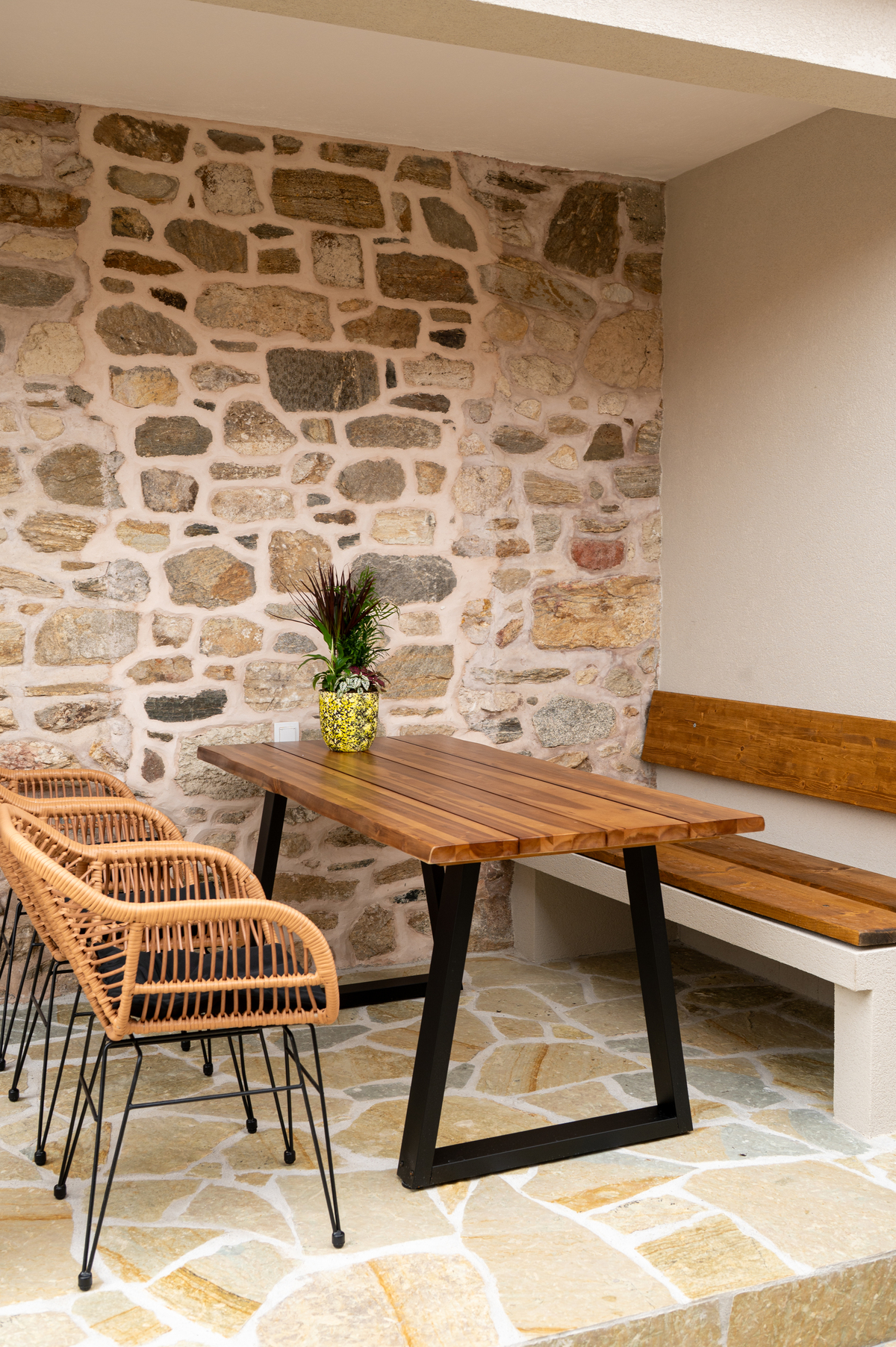 In the outdoor area, guests can enjoy the yard and use the shared barbecue, perfect for relaxing moments and meals in a summer atmosphere. The peaceful environment and the close distance to the sea create ideal conditions for rest and relaxation.